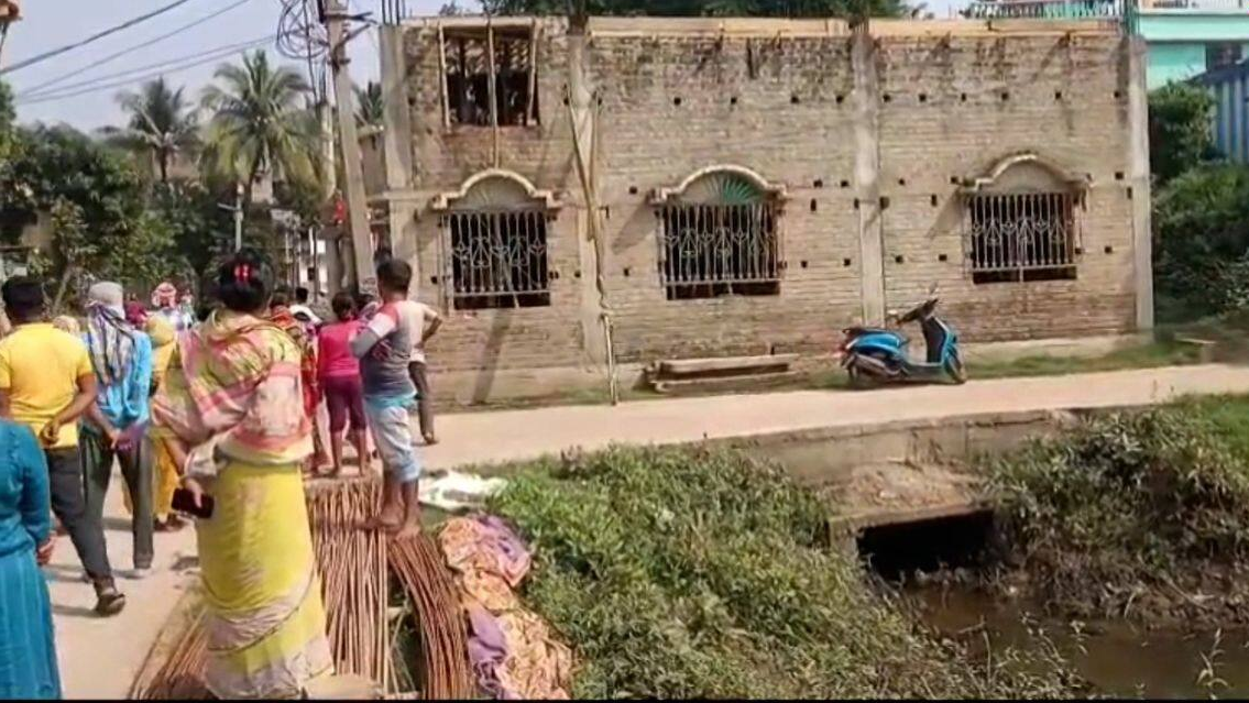 A controversial attempt to construct a government-funded house by encroaching on a public road has sparked outrage in the Haldarpada area of Krishnaganj, Nadia. Gopal Sarkar, a local TMC worker, has been accused of forcefully building his ‘Bangla Abas Yojana’ house on a government road, despite being allotted a specific plot of land under the Patta scheme.