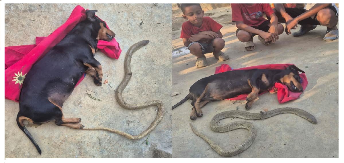 The incident occurred on Tuesday evening when the lady of the house was busy in the backyard. Suddenly, a large monocled cobra emerged from the bushes and prepared to strike. Sensing the imminent danger, Phoni lunged at the snake before it could reach his mistress. A fierce battle ensued for nearly half an hour, with the brave dog repeatedly biting and shaking the reptile. Although Phoni managed to kill the cobra, he sustained several lethal bites during the struggle. Within minutes of his victory, the venom took its toll, and Phoni breathed his last in the arms of his grieving owner.