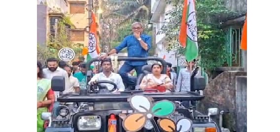 In a dramatic turn of events during the 2026 Assembly Election campaign, TMC candidate Debdeep faced a tough time in Khardaha on Tuesday night. While moving through the streets in his campaign vehicle, he was stopped by a local housewife who refused to let him pass until he addressed her grievances. The woman, visibly frustrated, forced the candidate to step out of his car and account for the long-standing civic issues in the locality.